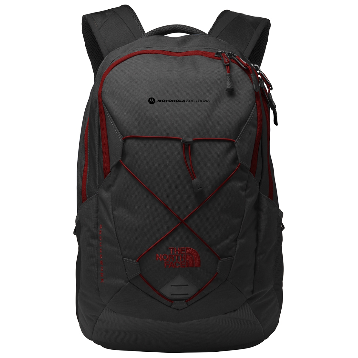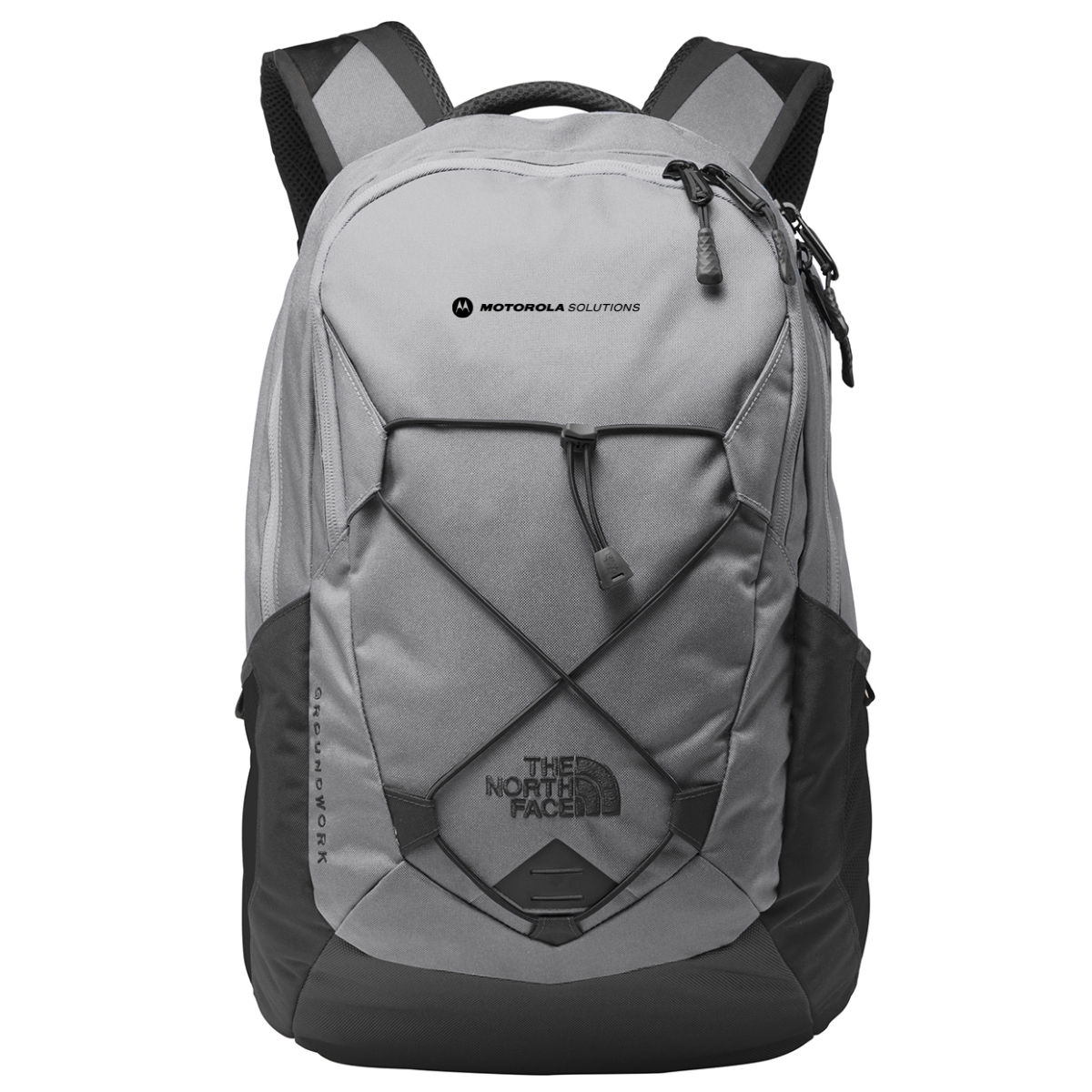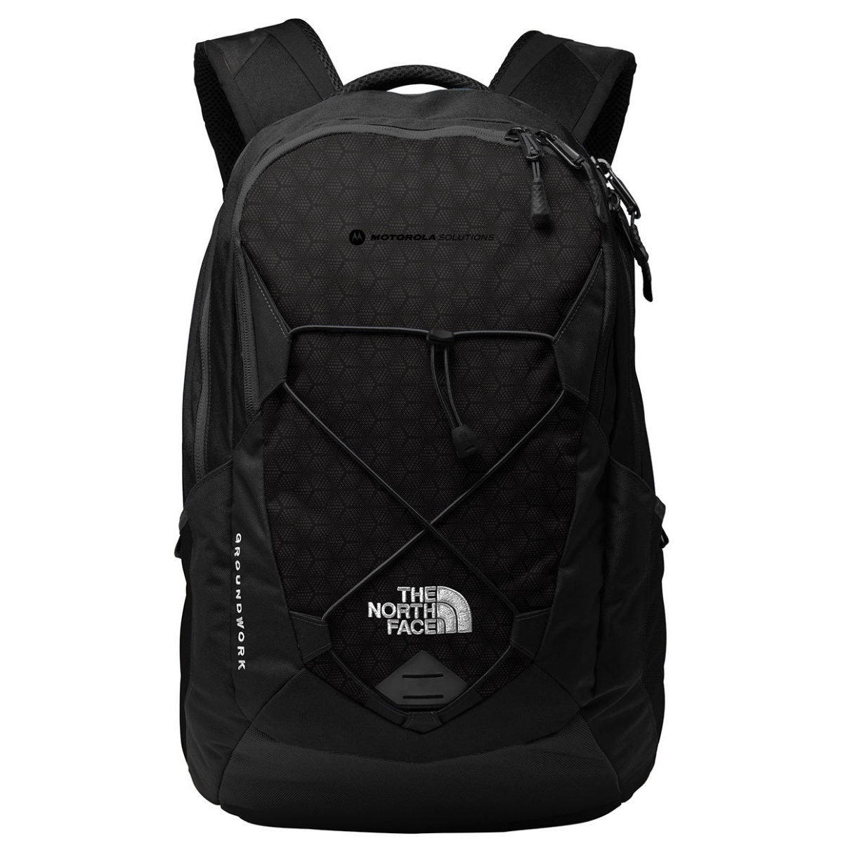 The North Face® Groundwork Backpack is a versatile and durable choice, perfect for both everyday use and outdoor adventures. It features a spacious main compartment with a padded laptop sleeve that fits most 15" laptops. The front compartment includes an organizer panel to keep smaller items accessible and tidy. Additional highlights include reflective accents for enhanced visibility, a comfortable padded back panel, and adjustable shoulder straps for ergonomic carrying. With its sturdy materials and practical design, this backpack is built to handle a variety of needs. Laptop sleeve is 12"h x 14" and the backpack dimensions are 19.75"h x 13.25"w x 7.5"d. Features Motorola Solutions Logo on the front panel.